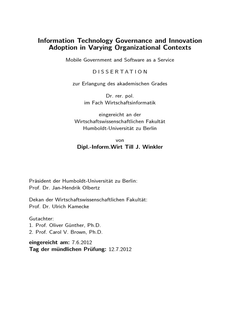 Information Technology Governance And Innovation Adoption In Varying Organizational Contexts Pdf Governance Innovation
