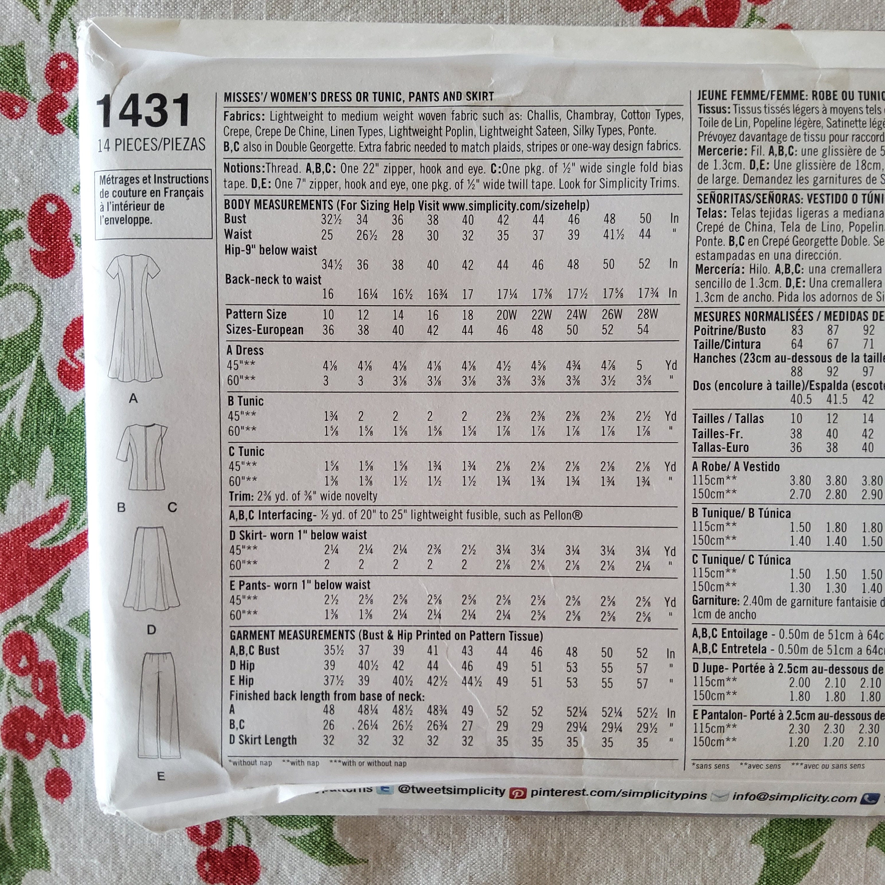 Simplicity 1431 Complete Uncut Factory Folds Sewing Pattern Etsy