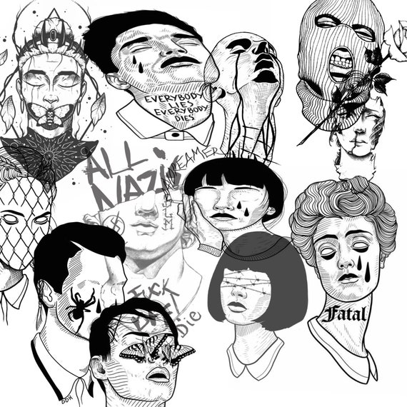 Tattoo Procreate Brush Set Blackwork Headsover 50 Stamp Etsy De